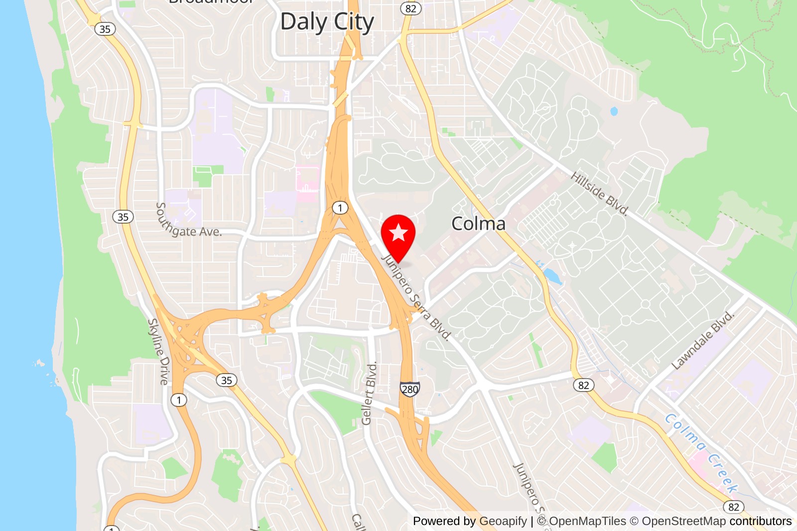 Location: 4927 Junipero Serra Blvd, Colma, CA 94014